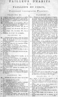 Im 18. Jahrhundert gab es zwei wichtige Werke, die uns Auskunft über Nähtechniken und Schitte der Zeit geben. Eines davon ist die Encyclopédie ou Dictionnaire raisonné des arts et métiers (Enzyklopädie oder alphabetisches Wörterbuch des Künste und Gewerbe) oder kurz "Die Encyclopédie" (1746-65), herausgegeben von Diderot, d'Alembert und anderen. Besonders interessant für die Kostümgeschichte sind die Tafeln des Abbildungsbandes Tailleur d'habits et Tailleur des Corps, die im folgenden vollständig wiedergegeben werden.