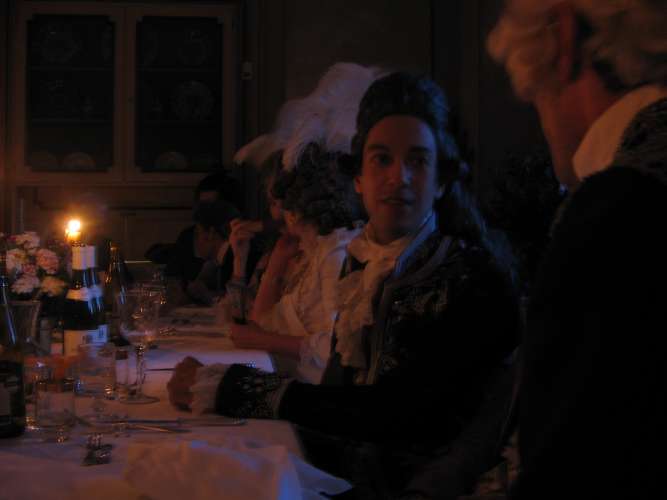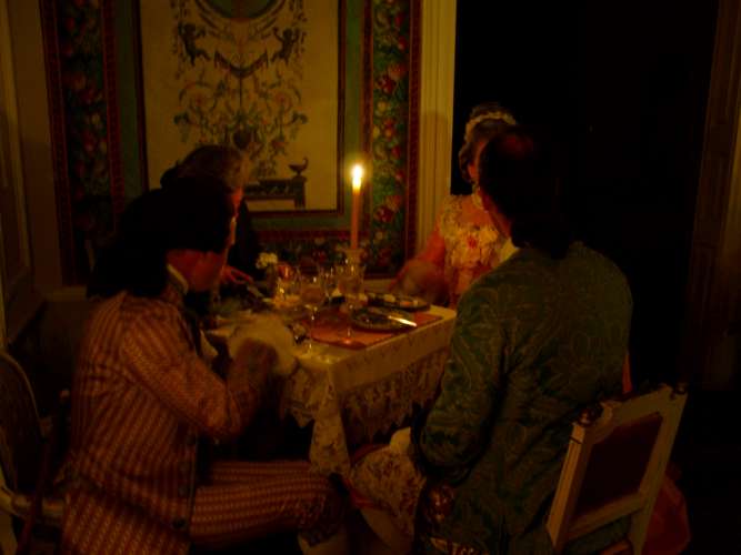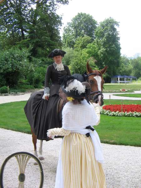 First of all, the organisers did a splendid job in finding the venue, hiring the servants, horses and coach, setting up the lunch pavillion and hiding its modern structure etc. I was particularly impressed by the fact that except for the wine bottles, the table setting was completely authentic: Correct porcelain, glassware, cutlery, water carafes and candle holders. Mind you, all that was not property of the castle, but organised especially for the event - even the breakfast tableware! Attention to such details is what makes such an event classy.