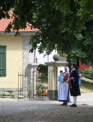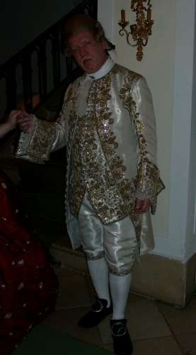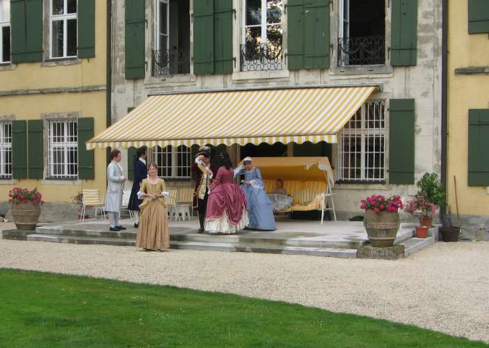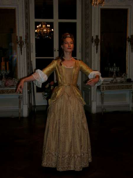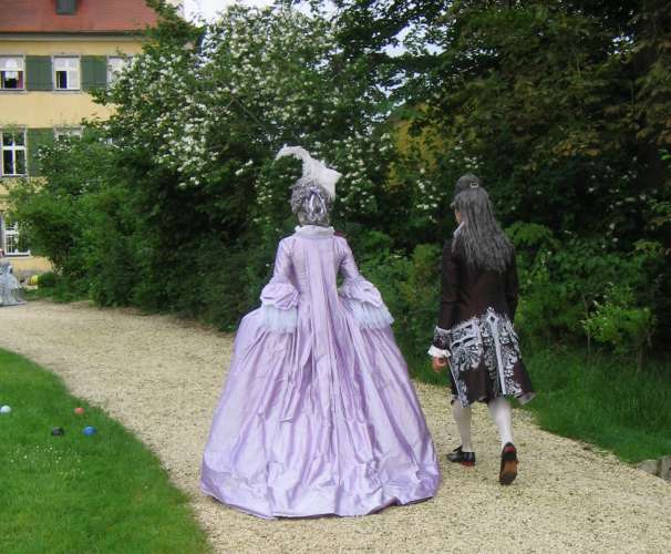 Another disappointment was the singer. Not musically - in that respect she was average. There had been test fittings and phone calls, Lilo had called back a pair of pocket hoops from a borrower, and I had dug out and brought some corsets and a robe to make sure she was dressed in style. But the singer refused to wear anything but the robe itself - although the corsets should have been relatively loose-fitting -, not even pocket hoops and a cap. Without the proper undergarments, the robe hung on her like a sack. The breakfast ladies refused period dress altogether, but since that was off-site, I didn't mind much.