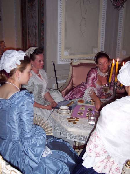 After the recital there were card games - Faro, to be exact. It is said that some people have lost a great amount of money. The ones who preferred to chat instead should consider themselves fortunate! The first guests excused themselves around midnight, while others enjoyed the cooler evening air on the terrace until a thunderstorm blew them away just as the church bell struck three.