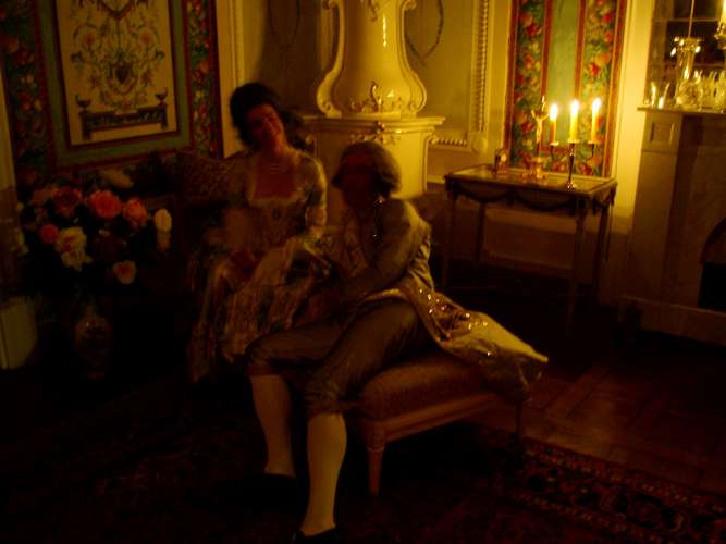 Dinner was served in the garden salon around 7 p.m. I cannot tell for certain since few of us wore a pocket watch. Unfortunately, the household was experiencing a shortage of servants so that the guests had to serve themselves. At least the cook had stayed! After dinner, the pary withdrew to the belle étage to listen to a recital. The music was bautifully performed by a soprano and a piano player, but apart from an aria or two by Maestro Händel, it was futuristic and had far too many notes in it. Composed by an Austrian baby named Wolfagang Amadeus, I was told, although how a baby could compose music, let alone write the notes, I was unable to learn.