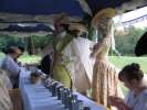 The event started on Friday, 24th June 2005, with the arrival of the guests between 3 and 6 in the afternoon. That is... most of the guests. Some arrived as late as midnight. We checked into our rooms, dressed and soon joined the others on the garden-side terrace of the castle. News were exchanged, the castle inspected, and the heat complained about. It must have been above 30°C all week-end. Under such conditions, the mere act of dressing causes floods of perspiration. Fans were much used, even by some gentlemen.
