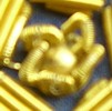 Pailletten: Jeder kennt diese metallicbeschichteten Plastikscheibchen mit dem Loch in der Mitte, aber die haben hier nichts zu suchen. Echte Pailletten bestehen aus plattgewalzten Drahtringen. Man erkennt sie an einem winzigen Schlitz - dort, wo die Ringenden waren. Es gibt sie in verschiedenen Größen; man sollte zwei davon haben. Sinnvoll sind z.B. 2-2,5 mm für Stiele und 3-4 mm für andere Musterteile. Bei kleineren Stickt man sich halbtot, größere wirken leicht billig.