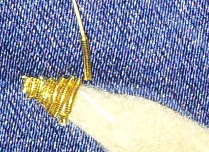 ziehen kann, ohne die goldene Umwicklung abzuschälen. Mit dem Seidenfaden