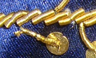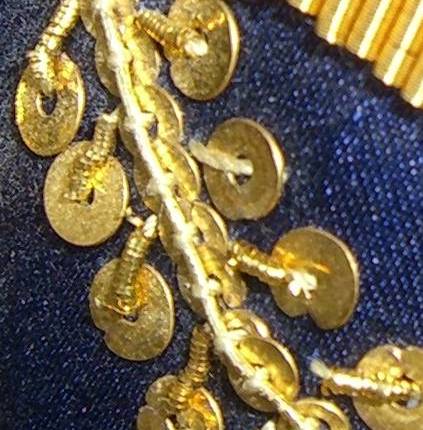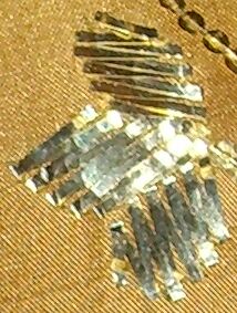 und zum anderen die goldenen/silbernen Teile, die mit dem Stickfaden auf dem