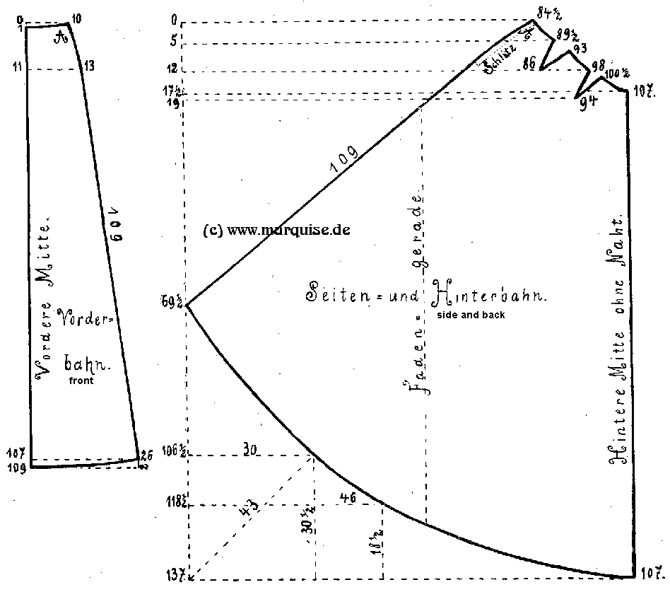 The patterns without a year are from a 1908 book and not for a certain design, but rather generic pieces of clothing. The rest is up to you. Instructions from the 1908 book are here. If not stated otherwise, the skirt hip width is 98, waist 60 for those generic patterns.